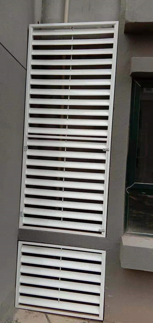 外墙百叶安装在外墙上既可以装饰又能通风和防水,既可以装饰高档小区可做空调机外罩,外型美观。外墙百叶采用高强度铝合金材料制作而成,具有强度高、易安装、外形美观等特点。其主体结构根据室外空调主机尺寸定做为开口框架形式,有利于气流的流动,减少风力对框架的直接作用力,框架之间百叶的连接,大大增加外墙空调百叶框架的强度。克服过去大面积外墙百叶受风力或气压影响出现的脱落现象。广泛用于美化小区楼盘,遮掩室外空调主机,美化楼宇建筑的外观。